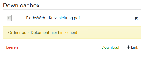 In der Downloadbox haben Sie die Möglichkeit, einen Downloadlink zu erzeugen und diesen an Empfänger zu senden. Dies ist besonders nützlich, wenn Sie Dateien mit Personen teilen möchten, die keinen direkten Zugriff auf die Plattform haben.
